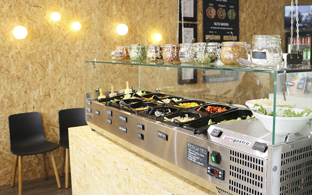 Salaattibuffetista sai koota mieleisensä annoksen.