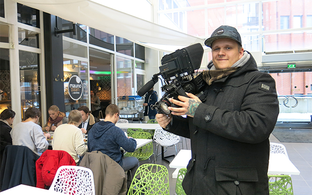 Etsimme uudenaikaista paikkaa ja tämä tuntui sopivimmalta. Kuvaamme työhaastattelutilanteita ja BioCity sopii siihen paremmin kuin esimerkiksi jokin kahvila. Teemme interaktiivista videota, eli videota, jonka tarinaa katsoja voi muuttaa.
