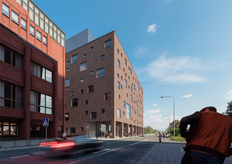 Uusi toimistorakennus jatkaa BioCityn ja DataCityn arkadilinjaa ja yhdistää EduCityn Lemminkäisenkadulle. Kuva: Sigge Arkkitehdit Oy.