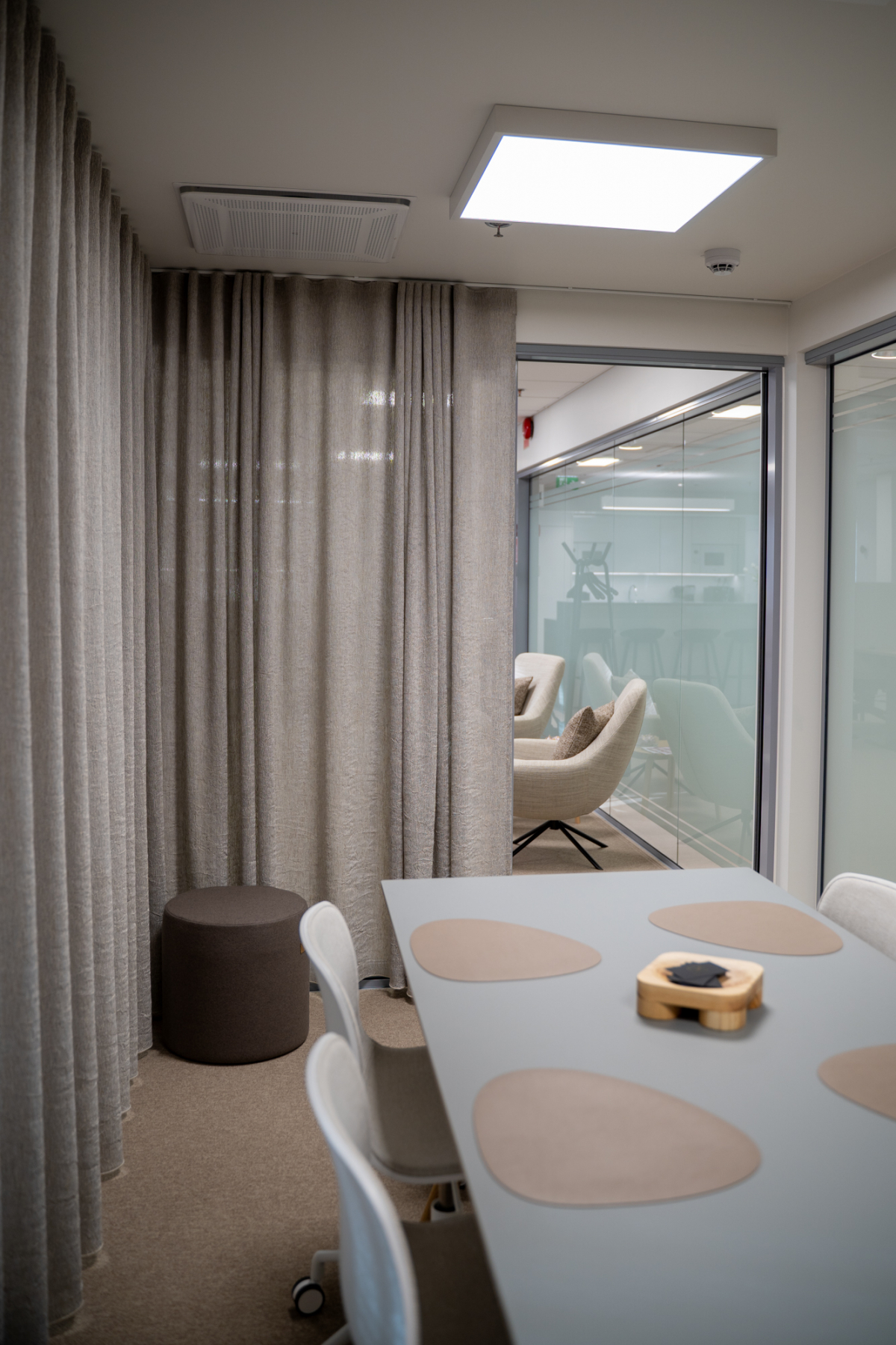 Uudessa toimistossa hyödynnettiin pitkälti tilan edellisen käyttäjän ratkaisuja, kuten työpöytiä. Remontteja tilaan ei tarvinnut ennen muuttoa tehdä, sillä toimisto oli uudistettu vain vajaat kaksi vuotta aikaisemmin neutraalin tyylikkäin värein.