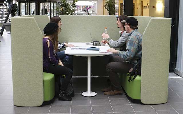 – BioCityn katutason showroomin kalusteisiin voi vapaasti käydä tutustumassa. Ne on otettu hyvin vastaan, ihmiset ovat kokeilleet niitä innokkaina ja jääneet pidemmäksikin aikaa niihin opiskelemaan ja työskentelemään, kertoo Santti tyytyväisenä.