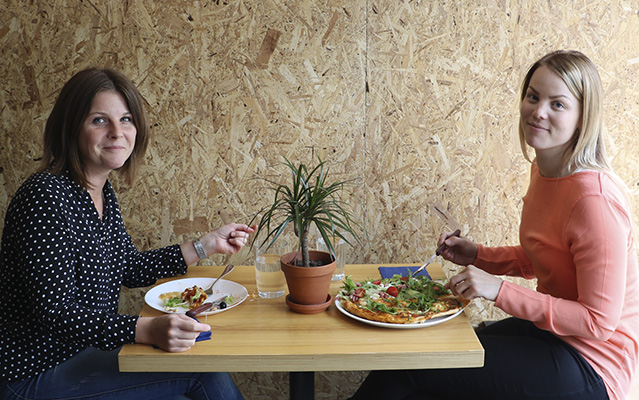 Pizzaa testaajat syövät lounaaksi harvoin, ennemminkin se kuuluu viikonlopun herkkuihin. Sari ja Outi tekevät pizzaa silloin tällöin myös itse. Splizzeria puolikas pizza ja puolikas salaatti -yhdistelmä oli raikkaampi vaihtoehto, ja sitä täytyy tulla maistamaan myös toistamiseen!