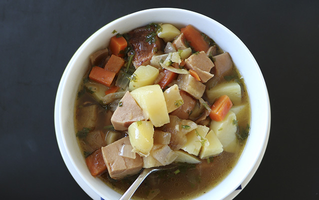 Makkarakeitto sisälsi makkaran lisäksi muun muassa perunaa, porkkanaa ja sipulia. Keittokulho on melko iso, joten nälkä kyllä lähtee tälläkin annoksella.