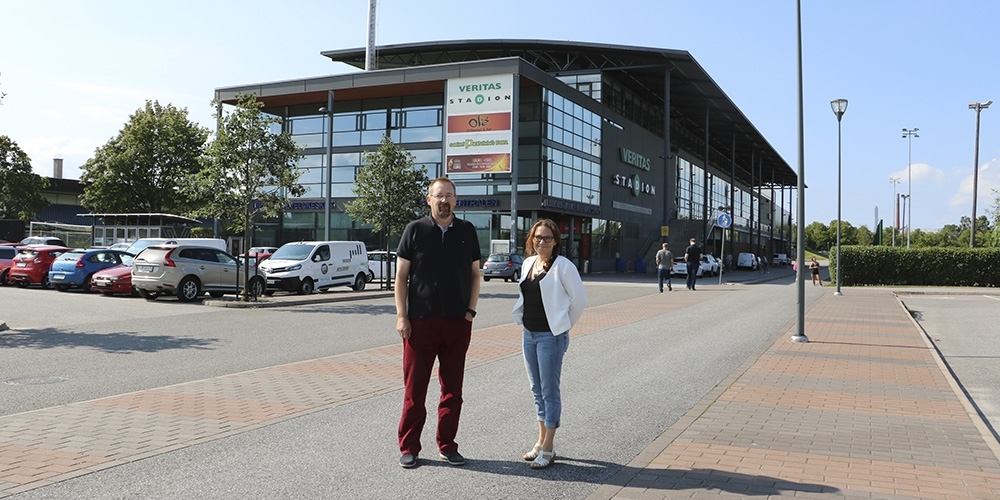 Kesälomien jälkeisen töihin paluun kunniaksi testiryhmämme päätti suunnata lounaalle ravintola Oléen, joka sijaitsee Veritas stadionilla vehreässä Kupittaanpuistossa. Ravintola löytyy stadionrakennuksen toisesta kerroksesta, jonne kuljetaan Turun liikuntapalvelukeskuksen kulmalta stadionin parkkipaikkojen edustalta. BioCitystä tullessa ravintola on kivenheiton päässä, ja puiston halki on mukava kävellä. Myös autolla tuleville löytyy runsaasti parkkitilaa, joten kauempaakin voi poiketa syömään. Reippailemaan lounaalle lähtivät Outi, Erkki ja Noora. Outille visiitti Olén lounaalla oli ensimmäinen, Erkki ja Noora olivat käyneet lounaalla aiemminkin.