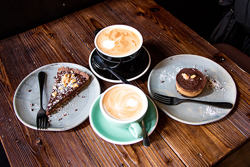 Koska herkullisen näköisiä raakakakkujakin oli maistettava, päättivät testaajat tilata vielä jälkiruuankin. Ulla valitsi vielä nimeämätöntä suklaapiirakkaa ja Terhi snickers-kakkua. Kummatkin kakuista olivat hyviä sekä todella tuhteja.