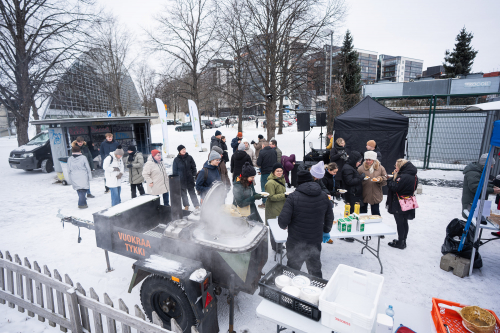 Yhteinen tapahtuma tarjosi mahdollisuuden luisteluun, ulkoiluun sekä tietenkin lounaaseen: hernekeittoon ja laskiaispullaan. Tapahtuman tarjoilut hoiti Unica ja tunnelmasta piti huolen Dj PikkuMiska.
