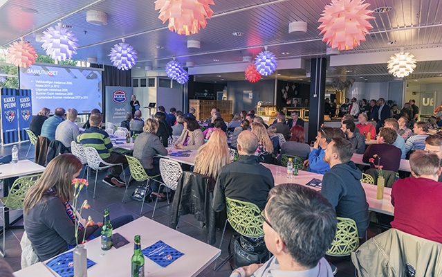 Keskiviikkona 7.10. järjestetty Sporttia parhaalla paikalla -tapahtuma houkutti taas salin täydeltä jääkiekon ystäviä ravintola Maunoon. Tapahtuman alussa TUTO Hockeyn päävalmentaja Ismo Lehkonen kertoi joukkueen kuulumisia sekä pohjusti illan ottelua Heinolan Peliittoja vastaan. Kuulimme myös hyökkääjä Tuukka Pulliaisen mietteitä, ja hallituksen puheenjohtaja Tuomas Haanpää taustoitti TUTO Hockeyn lähivuosien tavoitteita.