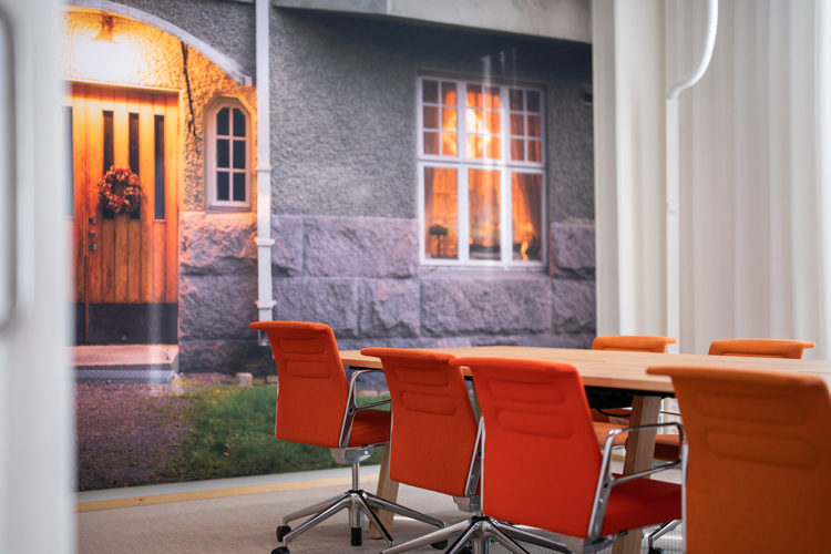 Monissa tiloissa on Turku-aiheisia valokuvia.