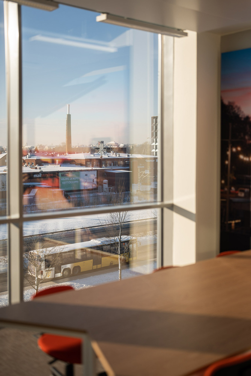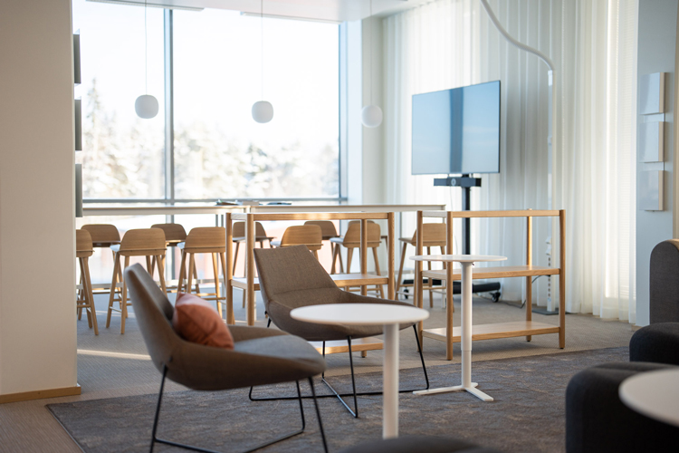 – Työpisteiden lisäksi InfraCityssä on runsaasti erilaisia neuvottelutiloja, hiljaiseen työskentelyyn tarkoitettuja huoneita ja työkahviloita sekä esityksiin ja kohtaamisiin sopivat, katsomona toimivat portaat, kertoo Teknologiakiinteistöjen rakennuttajapäällikkö Miika Tuominen.