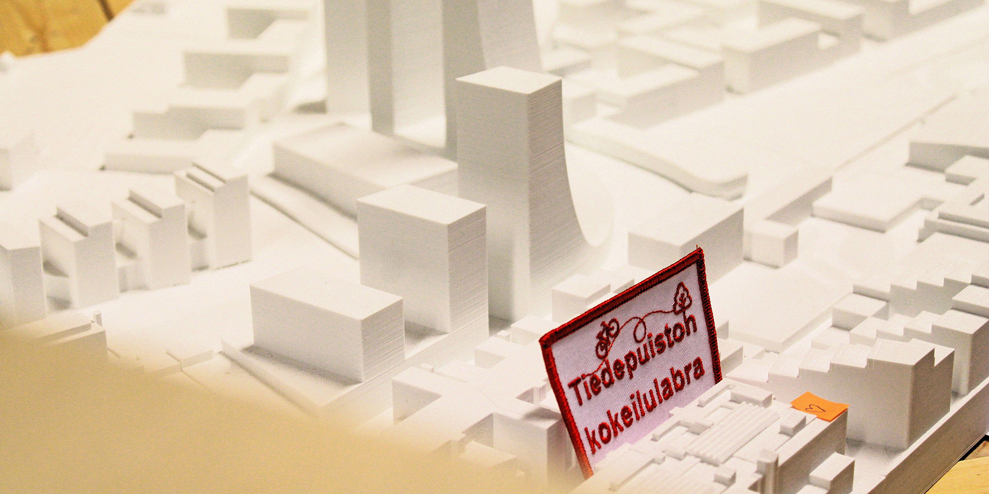 Tiedepuiston kokeilulabrasta löytyy mm. pienoismalli Tiedepuiston tulevaisuuden visiosta.