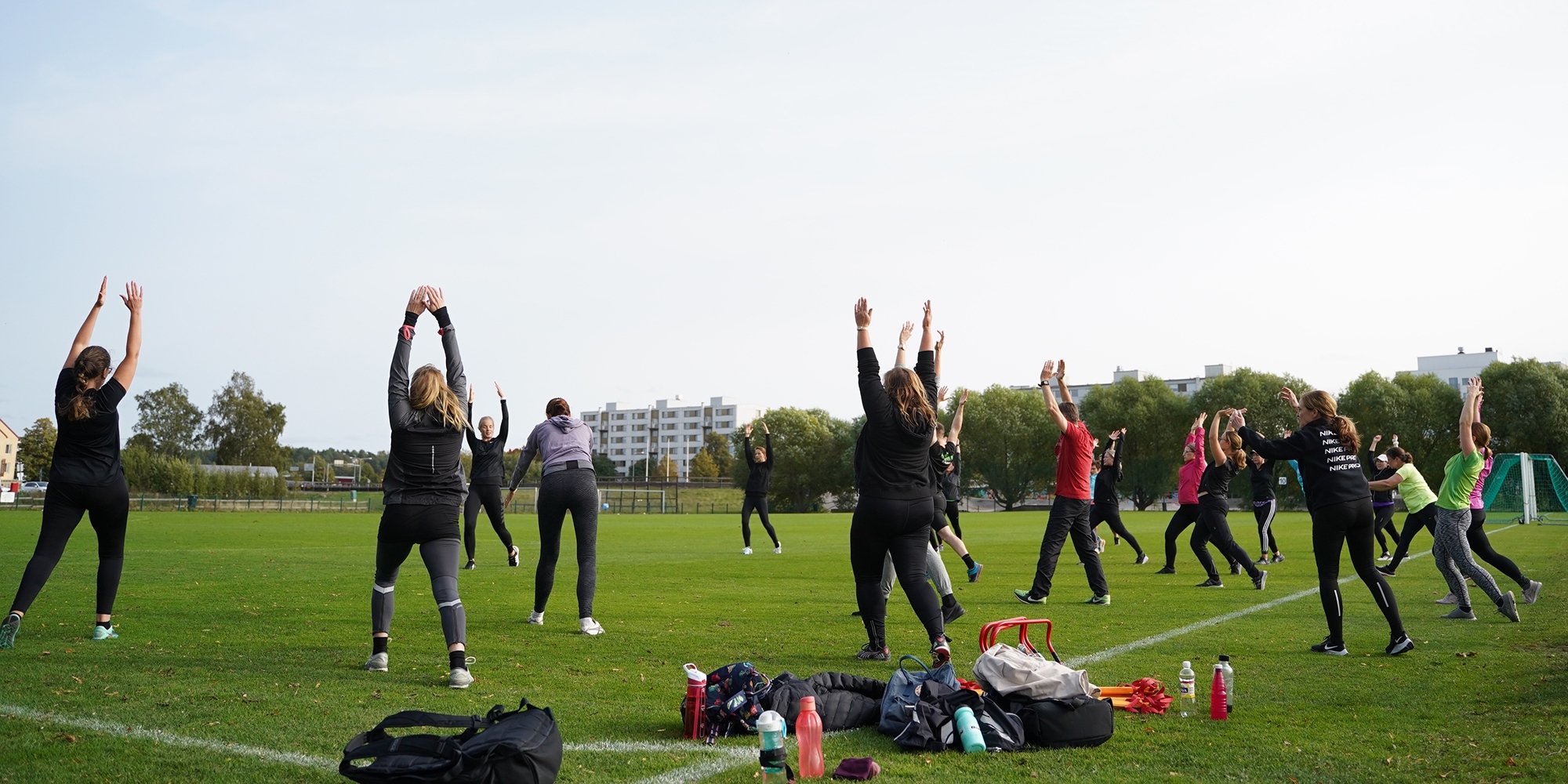 – Liikumme omalla porukalla aktiivisesti viikoittain. Olemme huomanneet yhteisliikunnan positiiviset vaikutukset ihmisten energiatasoihin ja yhteishenkeen ja haluamme jatkaa yhteistreenien järjestämistä turvallisesti. Toivomme tietenkin lämmintä syksyä ja treeni-intoa. Ulkona voi tehdä vaikka mitä, kuten olemme huomanneet aikaisemmissa treeneissä. Kaatosateella emme tietenkään treenaa, Sari lisää.