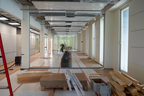 Turun Tiedepuistokoksi muuttuvalle Itäharjulle rakennettavan InfraCityn työmaalla on käynnissä viimeiset asennustyöt ja paikoin tilat ovat jo siivousta vaille valmiit. Rakennus valmistuu tämän vuoden loppuun mennessä ja asiakkaat pääsevät muuttamaan tiloihin alkuvuonna 2024.