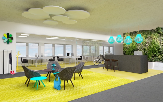 Turun Teknologiakiinteistöjen toimitilojen sisustuskonsepti sisältää kolme erilaista tyyliä, jonka jokaisen sisältä löytyy