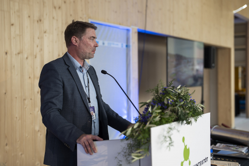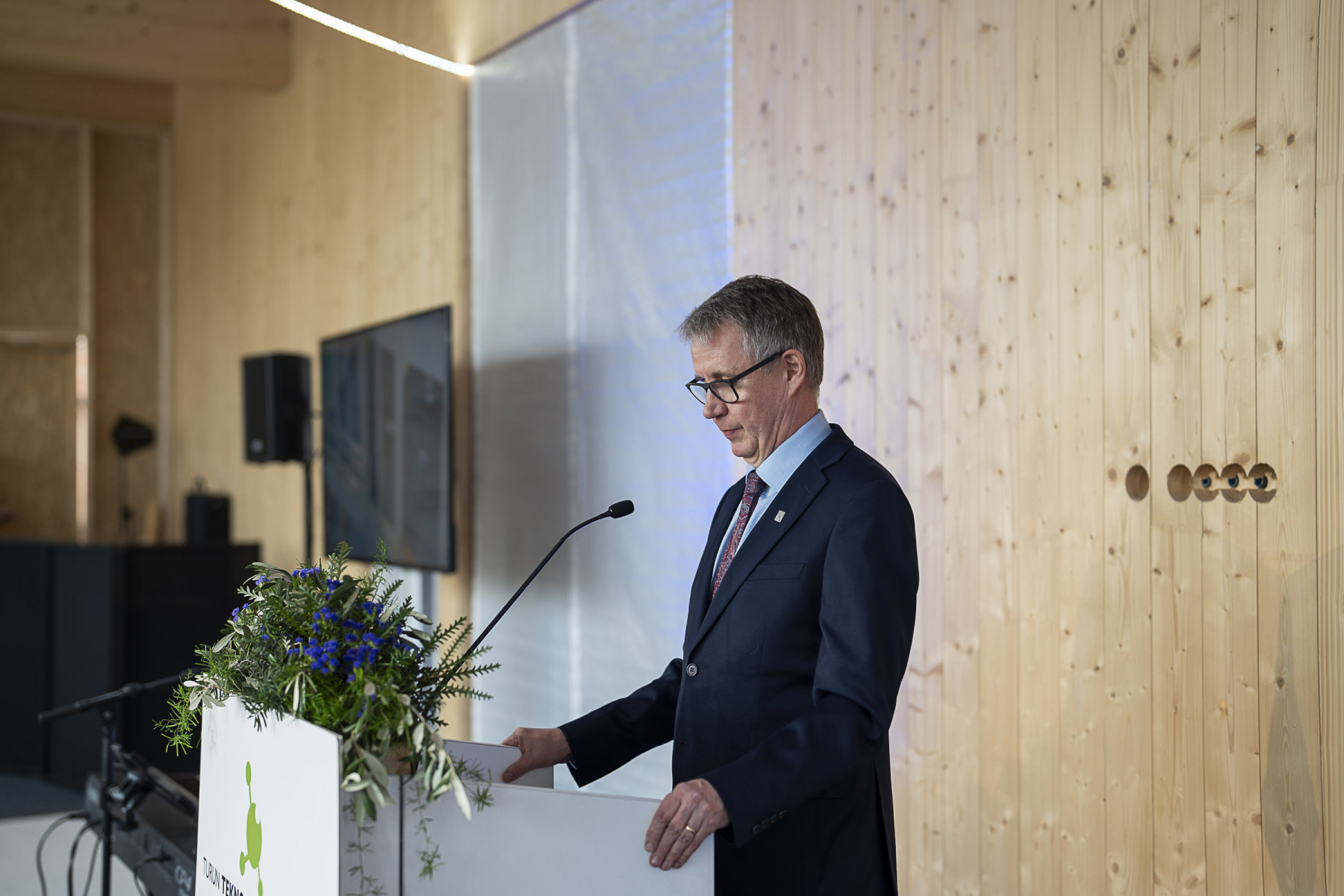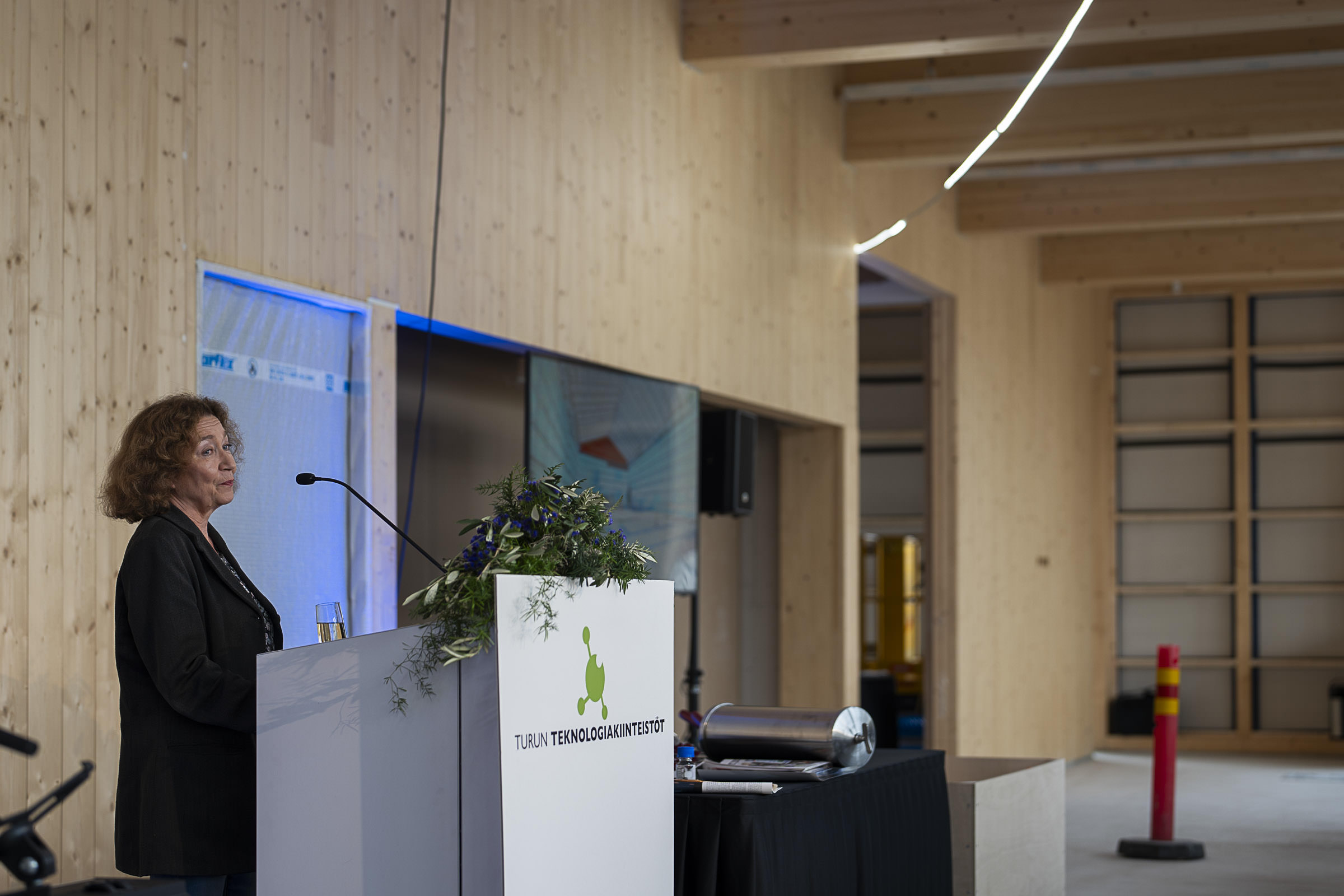 Teknologiakiinteistöjen rakennuttamisjohtaja Miika Tuominen korosti puheessaan rakennuksen ympäristöarvoja.
