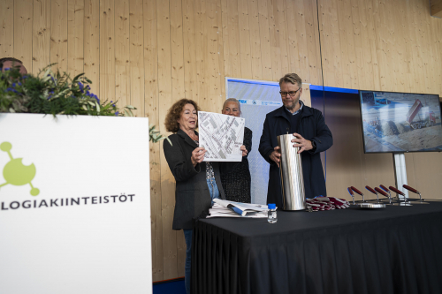 Turun Vesihuollon hallituksen puheenjohtaja Mirja Hovirinta, toimitusjohtaja Irina Nordman sekä Teknologiakiinteistöjen yhteisöpäällikkö Carita Varjonen.