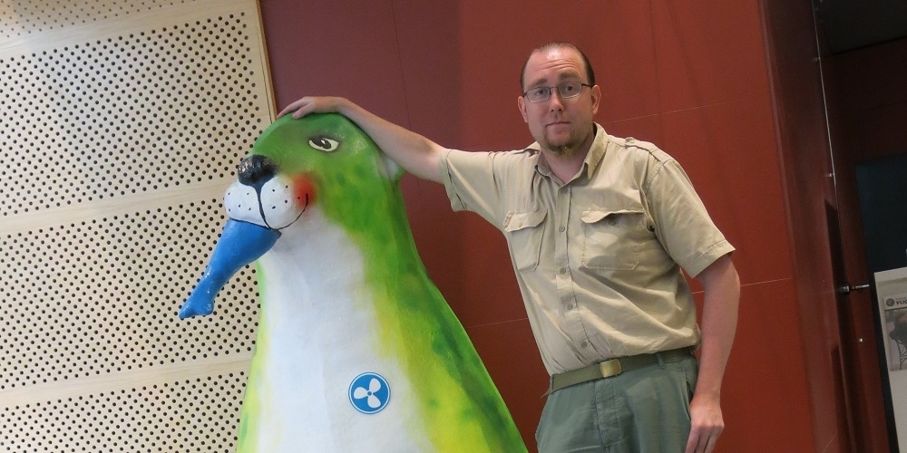 Viikon vastaantulija -tiimi bongaa Technology Research Centerilla laboratorioteknikkona työskentelevän Peter Virran ICT-Cityn aulassa.
