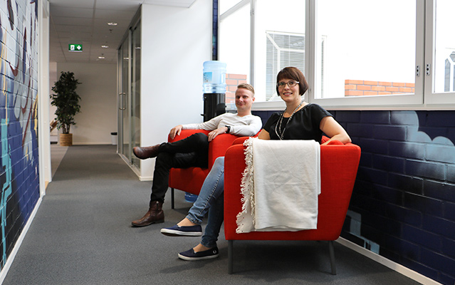 Marketing specialist Aleksi Kanerva ja projektipäällikkö Päivi Multanen.