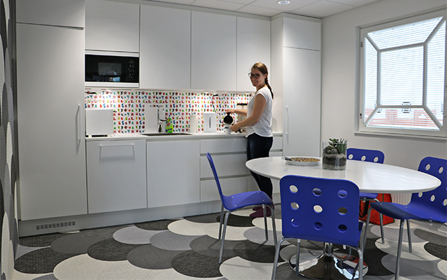 - Olimme seitsemän kuukautta väistötilassa Werstaassa, jona aikana toimistossamme saneerattiin kaikki pinnat, vaihdettiin ikkunoita, lasitettiin parvekkeet sekä uusittiin sähköt, valaistus, ilmastointi ja jäähdytys. Lisäksi muutamia seiniä purettiin, keittiön paikkaa vaihdettiin ja rakennettiin uusi serverihuone. Toimiston suunnittelusta vastasi Anniina Savisalo Sigge Arkkitehdeilta, joka sai hyvin kiinni siitä mitä halusimme, kertoo Whitestonen toimitusjohtaja Tuomas Haanpää.