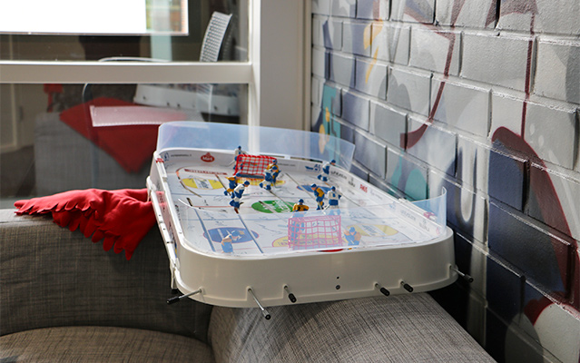 Pöytäjääkiekko oli jo ehditty purkaa muuttolaatikoista.