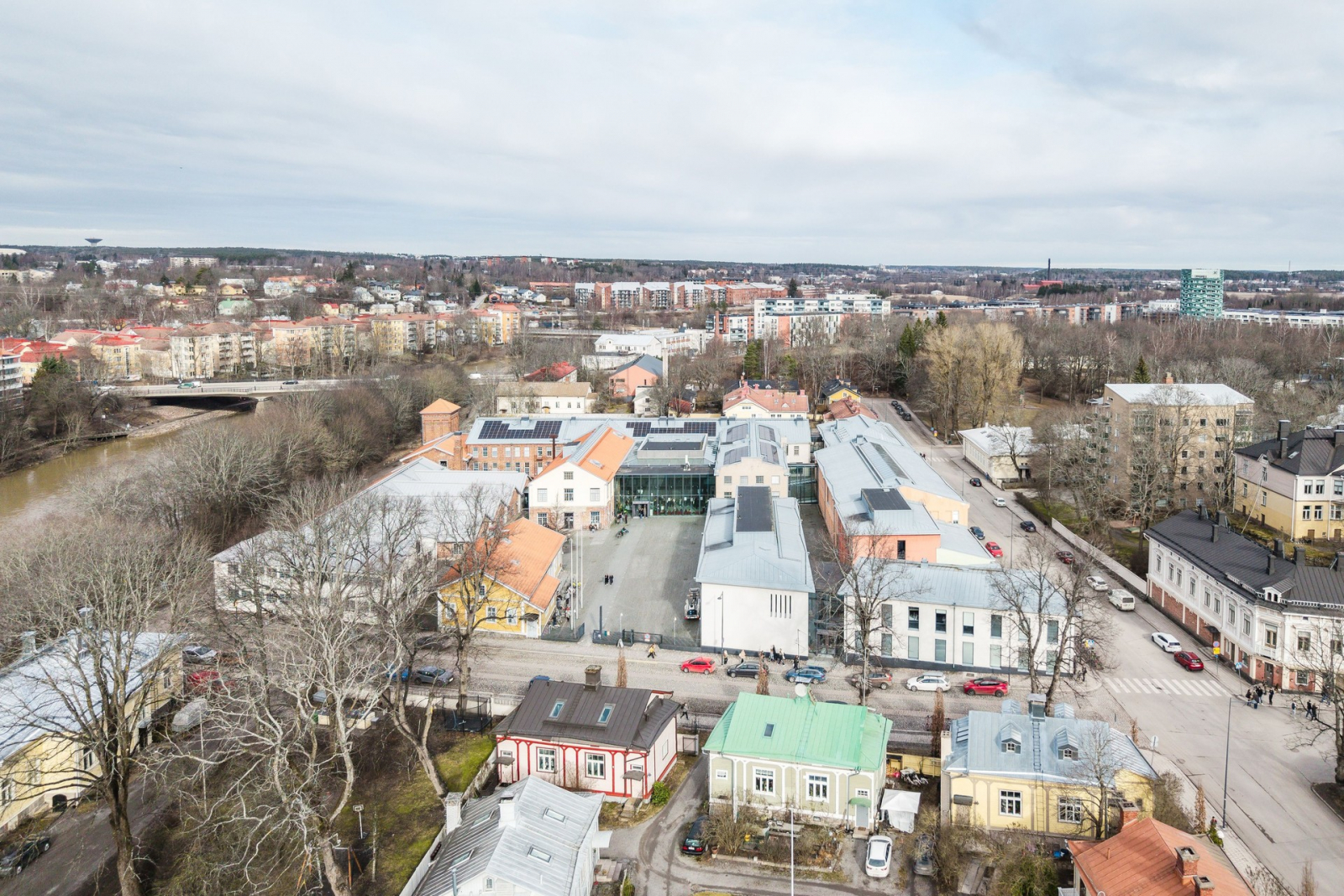 Arken is a complex of 13 buildings used by the Faculty of Humanities of Åbo Akademi University, located near the banks of the Aura River. The buildings house lecture halls, offices, a library, and an underground parking garage with 59 spaces.