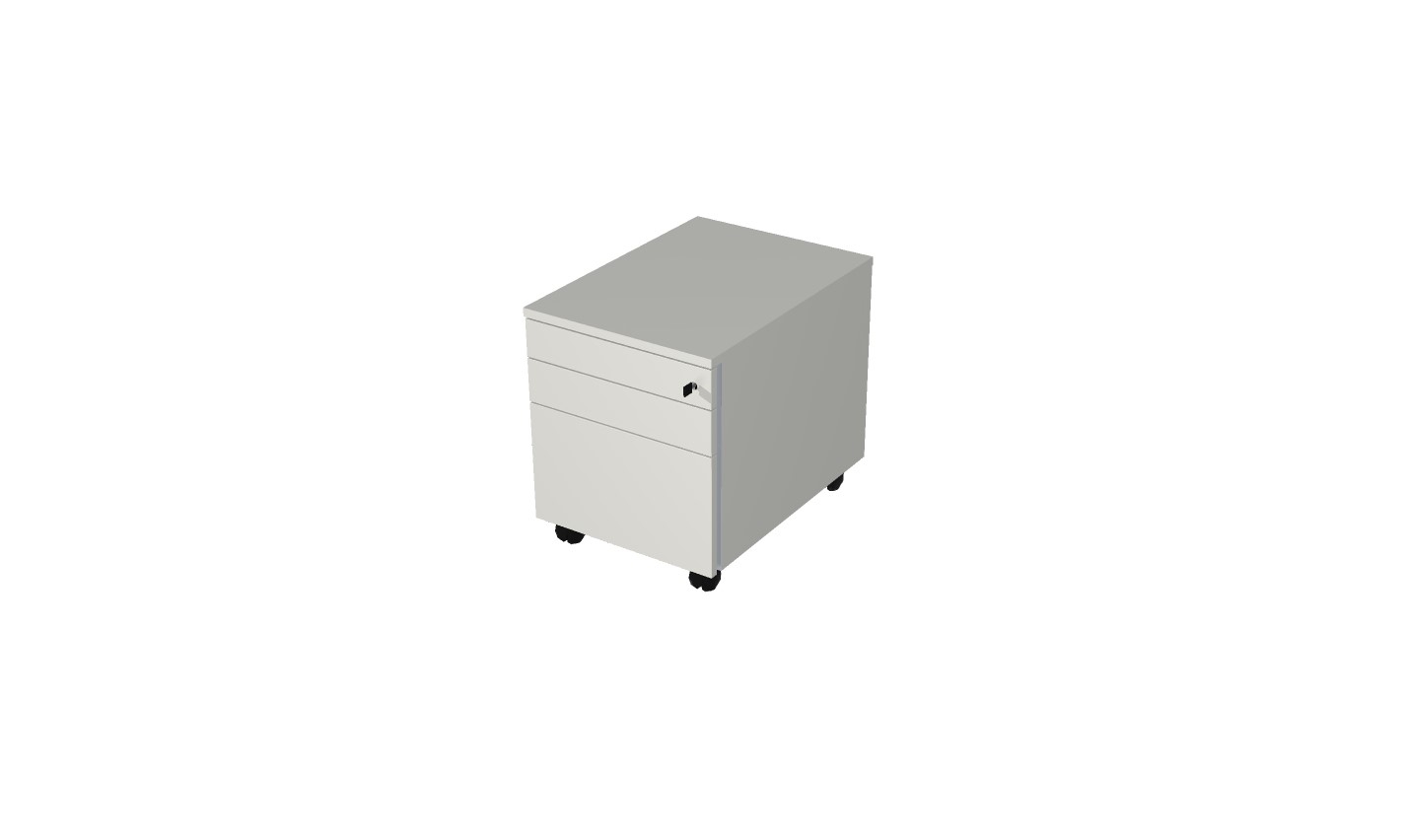 Laatikosto on työpöydän alle sopiva lukittava laatikosto pientavaran säilyttämiseen. Laatikosto on varustettu lukittavilla kalustepyörillä.