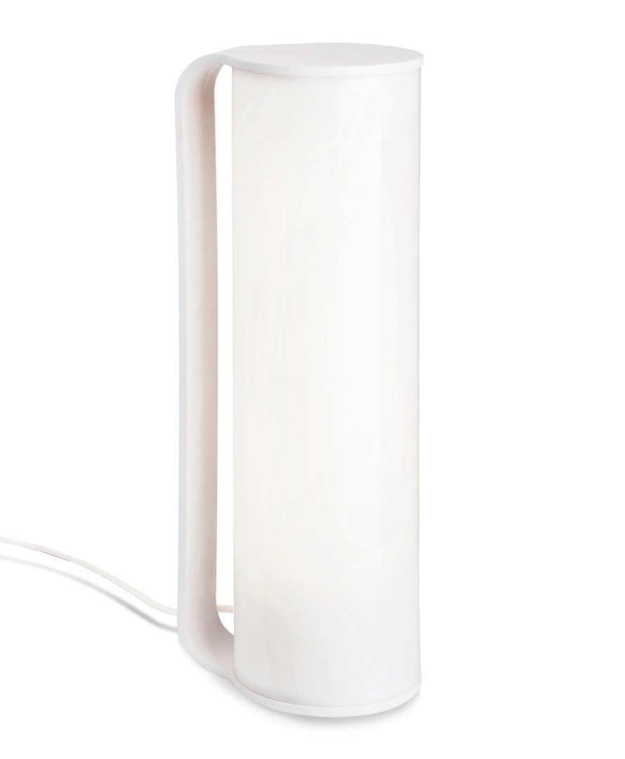 Sulavasti osaksi sisustusta sopeutuvan, kiekkomaisen valaisimen hillityn vaalea yleisilme saa mustasta tekstiilijohdosta pienen tvistin. Mattalakatun saarnijalustan päällä lepäävä, veikeän pyöreärunkoinen Epic on kompaktin kokonsa ja keveytensä ansiosta helposti siirrettävissä.