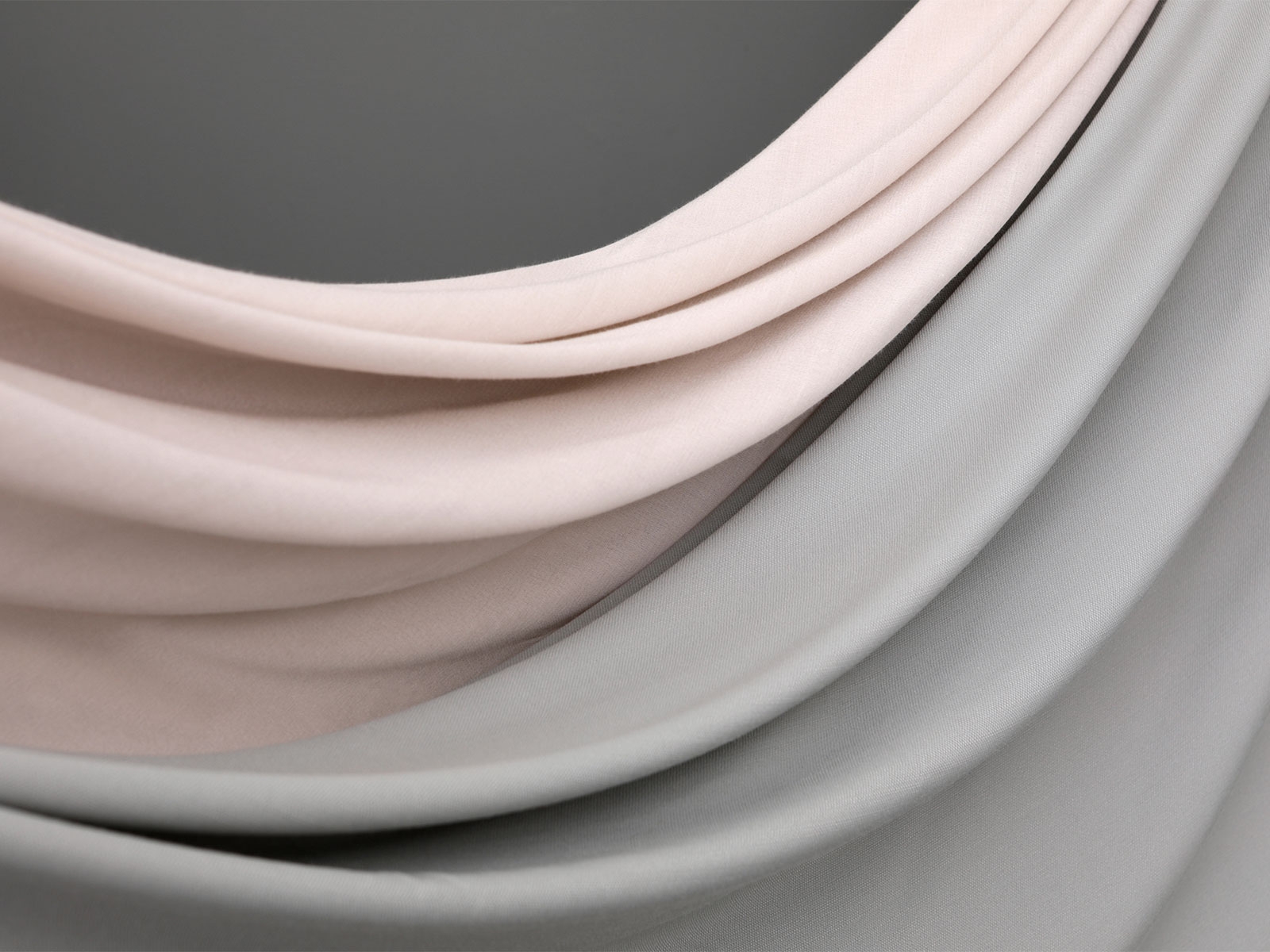 Paloturvallinen verhokangas, joka laskeutuu kauniisti, ja läpäisee valoa.